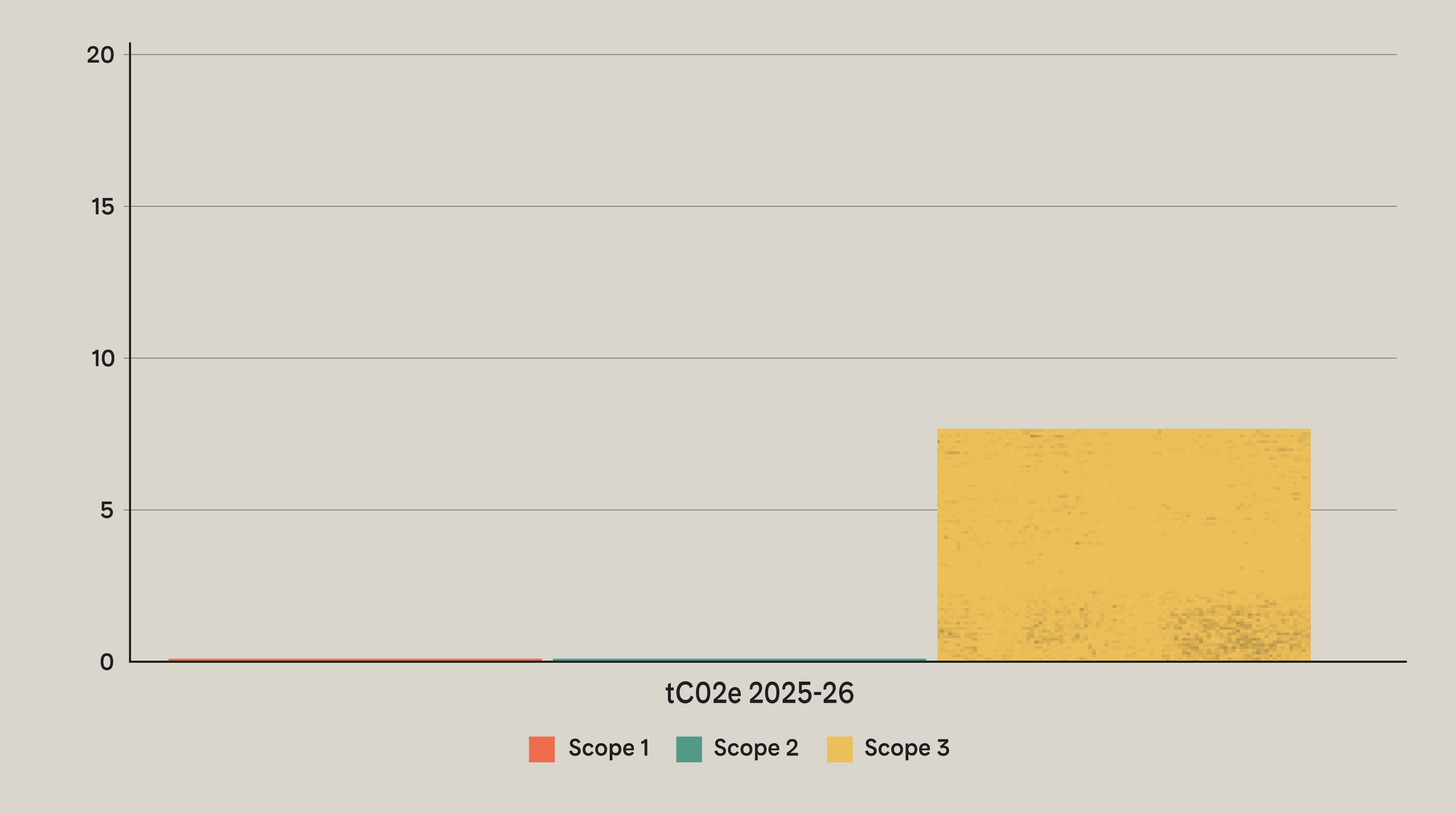 In the last tax year, we maintained our Scope 1 and 2 footprints at zero. Our Scope 3 footprint was 7.58 tonnes CO₂e, up from 5.83 tonnes CO₂e the previous year. This increase was the result of WMT growing and taking on more staff, so how we balance growth with a reduction in emissions will be a key challenge in the coming years. In the near term, we plan to maintain zero Scope 1 and Scope 2 emissions and, in the long term, reduce Scope 3 emissions by 90% by 2040.