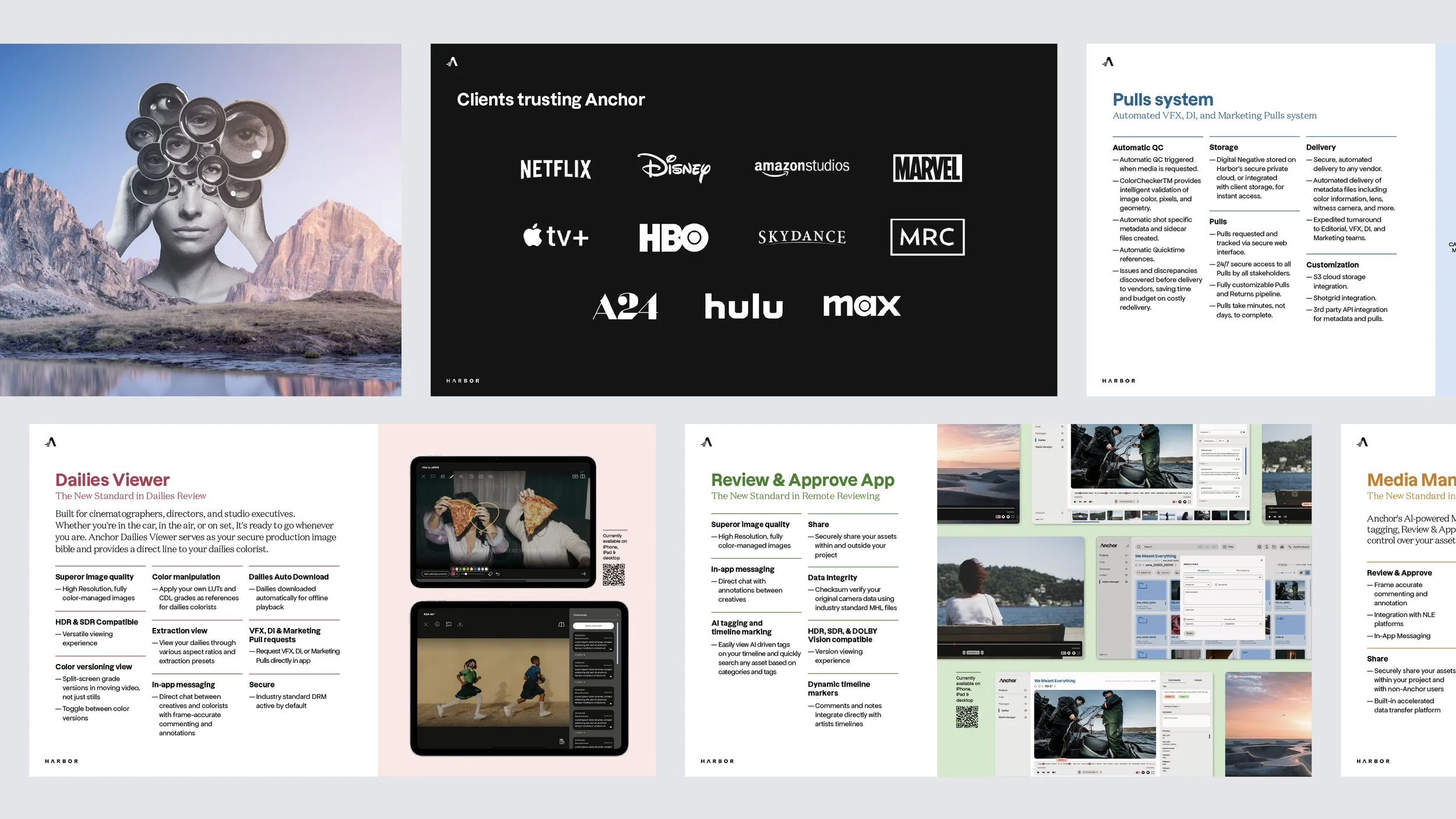 Harbor engaged WMT to give the Anchor brand and platform a complete refresh. With a target audience encompassing everyone from film studio heads to post-production assistants, they sought a brand that resonated with both the head and the heart, the technical and the emotional. And they needed a platform which answered its users' call for simplicity, elegance and dynamism.n text goes here
