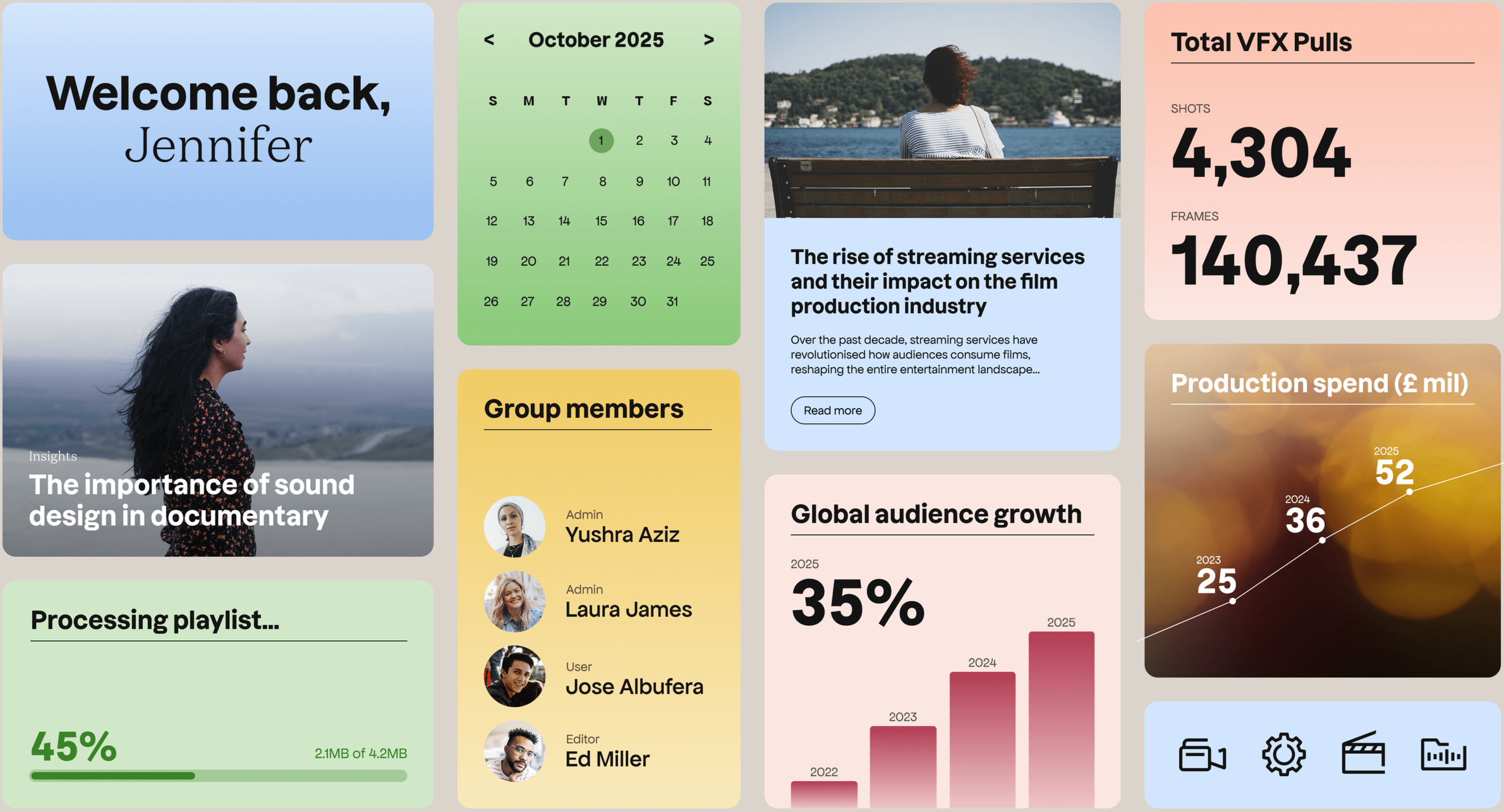 Whilst the brief was to create an identity that could live on its own in the spacious world of ‘expansive clarity’ we created, we also needed a nod to the Harbor Picture Company, the creators of the Anchor platform. We replicated the distinctive A shape from the Harbor logo to do this, using Dazzed Bold - a cinematic sans-serif typeface - and creating a loading animation to reference the agility, speed and adaptability of the Anchor platform.